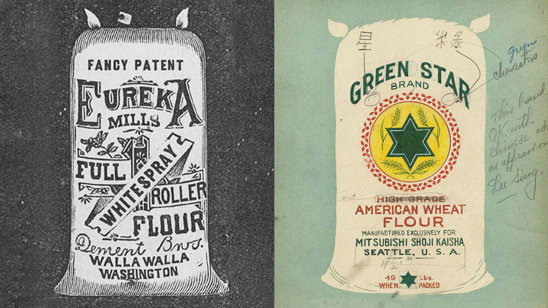 By the 1880s, flour mills were printing their names on the bags—an early form of branded packaging. One bag in the Smithsonian bears an 1890 copyright date. And the earliest logoed bags? They featured a mule, created for Ralston Purina.